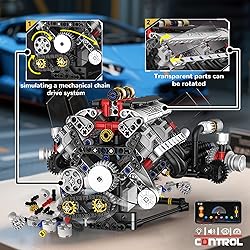 chanbrick V8 Engine Building Set Mini Model Kit That Runs, Technic with APP Control Motor & Light, Collectible Engineering for Adults 14+