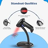 Barcode Scanner with Stand, Code Reader with 1MP Image Sensor, 2D Barcode Scanner for Multi Purposes & Wired Connection with Visual Indicator Alert