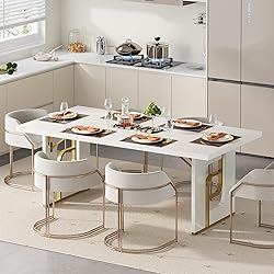 - Condemo 71 inch Large Dining Table for 6-8, Modern Rectangular Kitchen Table, Dinner Table Furniture with Metal Legs for Dining Room, Living Room, Home, Beige and Gold