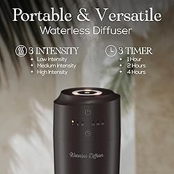 - Waterless Diffuser for Essential Oil, Battery Operated Aromatherapy Diffuser, Waterless Essential Oil Diffuser with 3 Mist Intensity & 3 Timers, Wireless Scent Diffuser for Home, Car, Office