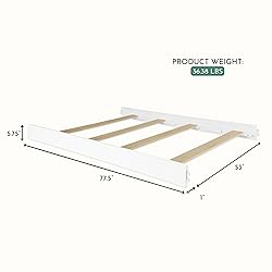 Seamless Crib-to-Bed Conversion – Transform your evolur crib into a full-size bed with these matching bed rails. Designed for long-term use, they make transitioning from nursery to big-kid room simple and smooth. Crafted for Strength & Stability – Built from solid hardwood and premium materials to ensure long-lasting durability and dependable support. These rails provide a safe, stable foundation that keeps up with your growing child. Easy Installation – Simple assembly process allows parents to attach the rails securely and efficiently. Includes all necessary hardware for a quick setup that keeps safety at the forefront. Perfect Fit for evolur Cribs – Specially designed to coordinate with evolur convertible cribs from the Amsterdam, Andorra, Antilia, Aurora, Belle, Belmar, Cape May, Cheyenne, Empire, Fairbanks, Flynn, Glam, Julienne, Kyoto, Lourdes, Madison, Maddox, Nova, Oakley, Parker, Provence, Remy, Santa Fe, Stilnovo, Waverly, Westbury, and Windsor (Flat and Curved Top) collections. These bed rails preserve evolur’s signature craftsmanship, elegant finishes, and cohesive design, ensuring a seamless transition from nursery to timeless bedroom style. Designed to Grow – Extend the life of your crib investment by converting it into a full-size bed your child can enjoy for years to come. Expertly crafted for durability, the Evolur Full-Size Bed Rails measure 77.5” L x 53” W x 5.75” H and support up to 250 lbs, providing a sturdy foundation for long-term comfort. Available in multiple premium finishes to perfectly match your Evolur nursery furniture. For compatibility and safety, use only Evolur Full-Size Bed Rails for conversion.