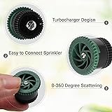 What you get: Upgrade your irrigation system with 10 durable adjustable sprinkler heads and 10 fine mesh filter. Each sprinkler head offers a customizable spray arc (0°-360°) by twisting the textured top, ensuring tailored coverage for flower beds, shrubs or lawns Easy water control: Adjust the spray angle effortlessly to target specific zones, reducing runoff and waste. The adjustable sprinkler head design supports low to medium water pressure systems, ideal for small gardens or intricate lawn layouts Engineered for uniform coverage: Unlike fixed nozzles, these 360 sprinkler heads with a close-range, fan-shaped spray pattern. Perfect for delicate plants, help keeping the grass lush. For extended reach, slightly increase water pressure, no complicated tools required Durable and reliable build: Crafted from quality plastic, these lawn sprinkler heads resist cracking and corrosion season after season. In conjunction with mesh filter, they maintain their shape under high pressure, ensuring long-term performance without leaks or clogs Upgrade your irrigation equipment: Replace your old nozzles with these adjustable sprinkler heads. Choose the model that suits your needs from 4van-17van, with spray distances ranging from a min of 0.9 meters to a max of 5.1 meters to meet your different needs
