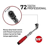 MacWork 3/8-Inch Drive Telescoping Flex Head Ratchet, 72 Teeth, Quick-Release, 1 Pack