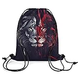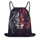 4SEE Novelty Abstract Lion Head Draw String Back Bag, Sturdy Large Capacity Gym Bag for Shoes, Towels, Adults Portable Drawstring Bags Backpack for Outdoors