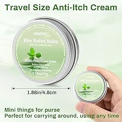 Mosquito Bite Itch Relief:The menthol ingredients contained in the anti-itch cream quickly release a cooling sensation after application, which can effectively relieve the itching and burn caused by mosquito bites. It also provides good relief for itching due to heat rash in the summer, soothing your skin Natural Ingredients:The cooling relief balm is formulated with natural plant ingredients including menthol, camphor, eucalyptus oil and clove oil. The mild formula is suitable for a variety of skin types and brings a gentler anti-itching experience Travel Size Itch Cream: The diameter of the 0.74oz/21g itch relief cream container is only 1.88 inch, which is very suitable for carrying in a purse or pocket. You can apply it at any time when taking dog out in the grass, traveling in the jungle, or tending to the garden in the summer to quickly relieve the itchiness. Summer camp,traveling essentials Multi-Functional Bug Bite Balm:When you feel motion sickness, seasickness, or feel sleepy and tired, you can apply cooling oil on your wrists or temples. The menthol and eucalyptus oil contained in the cooling oil can help refresh your mind, relieve fatigue, and relieve nausea caused by motion sickness Usage and Storage Tips: Please remember that this stop itching cream is for external use only. Please close the bottle cap tightly after use and store in a cool place out of reach of children