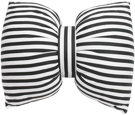 Bow Shaped Pillow, Decorative Sofa Throw Pillows, 17.7" x 13.8", Striped Black and White Reversible Pillow Cushions for Couch Bed Sofa Office Car Decor Neck Waist, Hand Made Cotton, Detachable to Wash