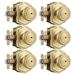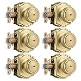 NCSEN 6 Pack Gold Door Knobs with Camelot Trim,Interior Door Knob with Lock,Coastal Privacy Door knob for Bath and Bedroom, Satin Brass