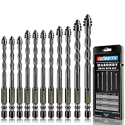 - Upgrade Your Drilling Power with DKIBBITH Serrated Masonry Bits!Conquer your toughest drilling challenges with the DKIBBITH 11-Piece Black 4-Flute Serrated Drill Bit Set. Engineered for superior performance and durability, this set is the essential tool for professionals and serious DIY ers.Key Advantages:4-Flute Serrated Cutting Edge: Experience dramatically faster and smoother drilling in hard materials. The four sharp, serrated flutes bite aggressively into concrete, tile, brick, and ceramic, reducing bit walk and user fatigue.Versatile Size Selection 11-Piece: Ready for any task, the set includes 3x 3/16", 4x 1/4", 2x 5/16", 1x 3/8", and 1x 1/2" bits. From precise holes for small anchors to larger openings for pipes and conduits, you're covered.Unmatched Material Compatibility: Go beyond masonry! This set is your go-to solution for drilling concrete, tile, glass, brick, and ceramic. It also handles plastic and wood with ease, eliminating the need for multiple bit sets.Built to Last - Black Oxide Coating: Crafted from premium hardened steel and finished with a tough black oxide coating. This coating dissipates heat, resists wear and corrosion, and ensures these bits withstand repeated use in demanding applications.Professional Organization: The included heavy-duty plastic storage case keeps your bits securely organized, easily accessible, and protected from damage or loss – perfect for toolboxes or job site transport.The DKIBBITH Difference:We combine innovative design (like the 4-flute serration) with premium materials and protective finishes to deliver drill bits that offer exceptional value, efficiency, and longevity. Equip yourself with DKIBBITH and drill with confidence on virtually any surface.Get the DKIBBITH 11-Piece 4-Flute Serrated Drill Bit Set today – your ultimate solution for fast, clean, and reliable drilling!