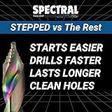 Spectral 29 Piece Stepped Point HSS Drill Bit Set, 1/16"- 1/2", Round Case, 135° Step Point Split Point Tip, M2 Steel, 3-Flat Shank, Multi-Color Finish