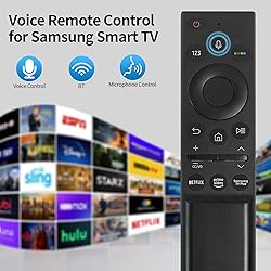 - Elevate your Samsung TV viewing experience with this sleek universal remote control. Designed to work seamlessly with all Samsung TV models including LED, QLED, UHD, SUHD, HDR, LCD, Frame, and Curved displays, this remote brings convenient control right to your fingertips. The intuitive button layout features dedicated shortcuts for popular streaming services like Netflix and Prime Video, making entertainment access quick and effortless. The ergonomic design includes a circular navigation pad, volume controls, and quick access home button for easy menu navigation. Voice control capability adds hands-free convenience to your viewing experience. Compatible with Samsung's latest smart TV technology, including 4K, 8K, 3D, and Smart TV features, this remote ensures you can control all your TV's advanced functions. The streamlined black finish and durable construction make it both stylish and practical for everyday use. Replace your old or damaged remote with this comprehensive solution that puts all your Samsung TV's features within easy reach.