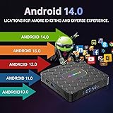 【Android 14.0 TV Box 2026】R69MAX Android TV Box is equipped with the latest Android 14.0 operating system, The box has upgraded the compatibility of the Android system and APP, runs more smoothly, has a brighter and simpler home page, higher security, and better protection of user privacy. 【Powerful Processor】The android TV box comes with RK3528 Quad-Core Cortex-A53 CPU with Mali-450 GPU, which make sure the box running stable, stronger image processing capability and smooth to load movies, pictures and games without a buffer. 【4GB RAM 32GB ROM】The Smart TV Box with 4GB RAM and 32GB ROM, comes with a large storage space to ensure faster and more stable operation of the operating system,There's also a TF card slot for you to expand the memory (up to 256GB) to save all your favorite videos, pictures and games, so you never have to worry about running out of memory again. 【2.4G/5.0G WIFI 6 & BT 5.0】Android box support 2.4G/5.0G WiFi 6 and 100M Ethernet. With WiFi 6 being the sixth generation of network technology, ensuring download and upload faster, more stable signal. Bluetooth 5.0 also allows for easy connection to a wide range of peripherals, enhancing your entertainment experience. 【8K TV Box & HDR10】Android 14 TV Box 2025 supports up to 8K@25fps decoding and smooth playback of 4K videos. Optimized chip performance reduces latency, offering a fluid viewing experience. With HDR10 dynamic metadata rendering, it enhances frame-by-frame contrast and color display, accurately restoring the original visual effects, make the picture display more vivid and beautiful !