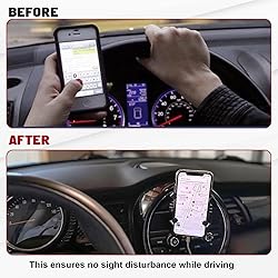 Compatibility: Compatible with Mini Cooper S JCW One F Series 6.5/8.8inch upper groove of the navigation. VERSION 1.2T is NOT APPLICABLE!. Applicable to 4.0-6.5 inch size smart phone. The total thickness of the mobile phone cannot exceed 15mm. Not FIT FOR R50 R52 R53 R55 R56 R57 R58 R59 R60. Please make sure your car model and your phone size before ordered Gravitational Design: It utilizes the principle of gravitational linkage, allowing the weight of the smartphone itself to automatically hold it in place with just one hand. Five clamping arm design can embrace the mobile phone stably. U shape design make mobile phone easy to charge 360 Rotation: It features a 360-degree rotating ball joint system that allows for free angle adjustment. This ensures no sight disturbance while driving. No abnormal noise when taking and placing the mobile phone. It's perfect for in-car calls and navigation Premium Quality: The phone holder is made of aluminum alloy and abs, which offers high durability and an antiseptic effect. The arm inner is made of thickened soft silicone which is high resistant and shake-proof. Prevents your phone from bumps, collisions, and scratches Easy to install: Simply insert it into the groove above the screen. It comes with two 3M tapes that provide stable adhesion