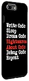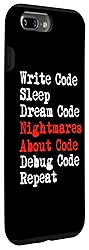 Funny design showing the full coder cycle from writing to debugging, with a twist “Nightmares About Code” in bold red. A perfect expression of dev humor and late-night stress loops. Ideal for computer programmers, coders, and software engineers who live the dream and the debug. Distressed font and high-contrast colors boost visual impact. Trending phrase for tech lovers. Two-part protective case made from a premium scratch-resistant polycarbonate shell and shock absorbent TPU liner protects against drops Printed in the USA Easy installation