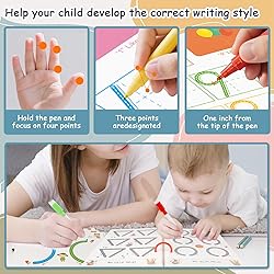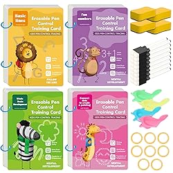 Set of 4 Scribble Smart Workbook, Reusable Tracing Books with Dry Erase, Preschool Learning Activities for Early Handwriting Development, Educational Write and Wipe Book Level 1234