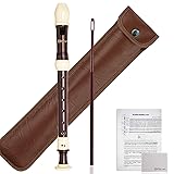 Soprano Recorder German Style C Key ABS 8 Hole Flute w/Leather Bag, Cleaning Rod and Fingering Chart for Beginners Students Adults