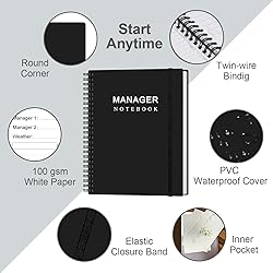 - This manager notebook size of 8.2" x 10.5", Using a project manager notebook to store all your data, you can track your comps, sales, payments, and customer behavior,consult your records whenever needed.The manager office supplies is used to high quality 100gsm pure white paper, elastic band and a back pocket for extra space.Just the perfectly size to fit in your backpack, purse or laptop case.