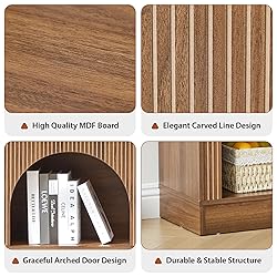 【Elegant Arched Design】This console table features a modern take on classic arches, adding architectural interest and a sculptural aesthetic to any hallway, entryway, or living space. 【Fluted Panel Texture】Crafted with vertically grooved panels and finished with a wood grain melamine veneer, the table blends refined texture with farmhouse warmth. 【Spacious 3-Tier Storage】Includes a wide tabletop, middle shelf, and bottom open storage – perfect for books, baskets, décor, and entryway essentials. 【Versatile Use for Any Room】Whether styled as a console table, entryway table, or sofa table behind your couch, it enhances both function and design in your home. 【Sturdy & Easy to Assemble】Made with durable MDF board and stable construction, the table is easy to assemble with included instructions and hardware.