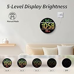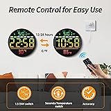 【Easy to Use with Remote Control & 11 Colors Display Modes】- This 8 inch digital wall clock comes with a high-quality LED display and a remote control for easy operation. Choose from 7 solid-color modes and 4-RGB-color modes, all easily adjustable to suit your style. With a 10.5-ft/3.2-meters data cable, you can mount the clock anywhere. It offers 5 adjustable brightness levels, making it senior-friendly. The well-crafted screen ensures clear visibility from any angle and distance. 【Integrated Night Light for Easy Viewing】- This led wall clock features a night light with 10 adjustable brightness levels, providing just the right amount of light in the dark. Perfect for nighttime use, offering a soft glow that ensures clear visibility without disturbing your surroundings. 【Countdown Timer for Various Scenarios】- This digital wall clock features a countdown timer with a range of up to 99 minutes and 59 seconds. Whether you're in the kitchen, home gym, classroom, or meeting room, the timer helps you stay focused and productive. 【Temperature & Seconds Switch 】- Equipped with an internal temperature sensor, the clock measures the room temperature, making it ideal for homes, offices, and garages. Easily switch between °C/°F settings. Plus, with a simple button press, switch to seconds mode for accurate time tracking. 【DST One-Touch Adjustment】- With the built-in Daylight Saving Time (DST) feature, adjusting the clock for seasonal time changes is quick and easy. A simple manual adjustment ensures your clock stays in sync with daylight saving time, so you don’t have to worry about changing it every season. 【3 Alarm Clock Modes】- Customize your wake-up routine with 3 different alarm modes. With 5 adjustable volume levels, you can choose the perfect volume to wake up, whether you prefer a gentle reminder or a louder alert. 【Plug-in Powered】- Powered by a plug-in electric system and does not rely on batteries. The backup battery only preserves time in case of a power outage, ensuring that the clock continues to function properly. It’s a reliable and energy-efficient option for your home or office.