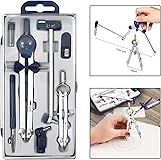 Stainless Steel Math Compass 7 Pieces/Set Math Geometry Drafting Supplies, Drawing Compass with Adjusting Wheel and Extension Beam