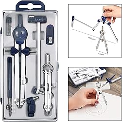 Perfect professional drawing or drafting stationery tool. Compass Math Set, It's a metal compass. equipped with an adjusting wheel and an extension beam with an automatic locking mechanism, allowing you to accurately set and hold the desired circle size. With universal adapter and extension beam For math, geometry, art, drafting and drawing.By turning the middle of the screw to adjust the opening and closing compass. You can accurately set the size of the circle you need and hold it. The extension beam for drawing large circles, great for those need to big circle. Also includes a small pen that can be used in the slip handle or separately. Everything packaged nicely in reusable clear case to protect and keep tools in one place, easy to carry and store.