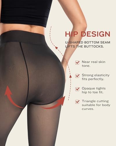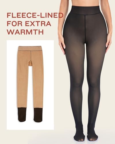 LZYVOO Fleece Lined Winter Tights Women - Fake Translucent Warm Pantyhose Sheer Thick Thermal Tights Leggings