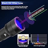 - Black Light UV Flashlight Rechargeable Made of 4-core 365NM UV LED bead, 30W high power, real invisible uv light that is not dazzling. When it irradiates items containing fluorescent agents, security code or watermark, it will show obvious blue-violet light. High Powered Blacklight Flashlight Black light flashlight powerful has only one lighting mode, not adjustable. but uv flash light features stepless dimmable function, you can long press switch to increase or decrease brightness. USB C Rechargeable Blacklight with LCD Power Display Powered by rechargeable battery, with 3 hours battery life. You can use the included USB-C charging cable and take 4 hours to fully charge. Equipped with newly upgraded LCD power percentage display, you can accurately know the remaining power, No more worries about power outages. UV Flashlights Used in All Areas of Life black light for pet urine detection uv light for resin curing scorpion light pet urine detector light blood tracking light for hunting black light for uranium glass cat urine detector uranium glass flashlight ac uv light uv light for bed bugs urine detector light bed bug light detector black lights for glow party