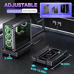 - Product Highlights110LBS Super Load Capacity - Stable Support for Heavy duty Tower Case, Anti Tilt and Anti Vibration, Ensuring Hardware Safety Adjustable width design (9.05-12.59 inches) - compatible with different sizes of chassis, strong compatibility16.92 inch extended base - provides larger contact area and flatter placement Product specifications Material: High strength metal adjustment rod+anti slip silicone frame Load capacity: 110 pounds (approximately 50kg)Size adjustment range: Width 9.05-12.59 inches (23-32cm), Length 16.92 inches (43cm)Applicable scenarios: Esports consoles, workstations, high-end gaming PCs