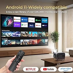 【4K Support & Stunning Visuals】 Experience brilliant clarity with this mini projector that supports 4K decoding, delivering sharp images with 400 ANSI lumens and a 5000:1 contrast ratio. The advanced NTSC color technology ensures vibrant, true-to-life visuals—even in bright environments. Great for movies, gaming, and presentations. 【Built-in Android 11 & Streaming Apps】 Powered by Android 11 and a high-performance H713 chip, this smart projector offers seamless access to popular streaming platforms like YouTube, Prime Video, Netflix, and more. This Android 11 projector is the perfect choice for creating a stunning home theater or bedroom projector. 【Immersive Sound & 200" Large Display】 This portable movie projector features 5W Hi-Fi stereo speakers enhanced with SRS surround sound, providing rich, cinematic audio. With electric focus and 4D keystone correction, it supports a 30"–200" screen and delivers perfectly aligned visuals indoors or outdoors. 【WiFi & Bluetooth for Seamless Connection】 This Wi-Fi and Bluetooth projector supports 5G and 2.4G dual-band Wi-Fi, seamlessly connecting with your phone or computer for ultra-fast, lag-free gaming and wireless projection. Additionally, Bluetooth 5.2 technology allows you to easily connect your favorite soundbar, headphones, or other audio devices for a truly immersive sound experience. 【360° Rotation & Versatile Installation】 This portable projector is designed for maximum flexibility—mount it on the ceiling, wall, tripod, or table using the 1/4" screw hole. Easily connect devices via HDMI, dual USB ports, or a 3.5mm audio jack. Enjoy 360° rotation for multi-angle projection on any surface.