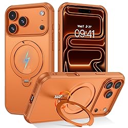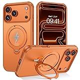QuantumKoo Compatible with Magnetic iPhone 17 Pro Case 6.3" 2025, with 360° Rotatable Kickstand Magnet Ring [Compatible with Magsafe] Cute Slim Matte Drop Protective Bumper Phone Cover, Cosmic Orange