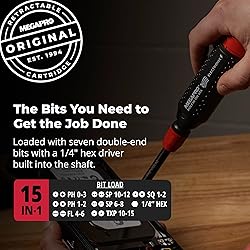 MEGAPRO's Retractable Bit Cartridge stores 7 double-ended bits for easy access to 14 common bits used in the Technical Spaces. This tool becomes a 15-in-1 with it's 1/4" Nut Drive within the Alloy Steel Shaft. The Palm-Saver Cap adds a smooth functionality and comfort when using the driver. The Ultra-Strong Lumid Handle holds up to every job. The EZ Guide Collar helps maintain shaft alignment by supporting full contact between the bit and the screw. Purchase of this product in the USA or Canada supports MEGAPRO’s “Feed the People” Program.