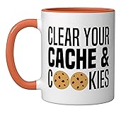 Clear Your Cache & Cookies Funny IT Computer Geek Tech Nerd Ceramic Mug, Orange/White
