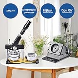 【Upgraded Magnet Making Machine】: This Photo Magnet Maker Machinehas been upgraded in labor-saving and positioning design. The ergonomic handle saves effort, and the rotary installation technology improves accuracy, greatly improving the success rate of making refrigerator magnets,Your Personalized Pin Making Machine Unleash your creativity with our DIYS Fridge Magnet Maker, Turn your favorite photos into magnets to display proudly on your refrigerator or anywhere else you want 【Quality Materials】: Constructed from high-quality steel and aluminum alloy, our magnet maker machine is designed for longevity. The ergonomically designed handle allows for a comfortable grip, making the badge-making process more efficient and less strenuous, say goodbye to hand fatigue and hello to effortless creativity! The rotary installation technology improves accuracy, greatly improving the success rate of making refrigerator magnets 【Easy To Operate】: It just takes four steps to make a button magnet with our magnet button making machine. First, cut picture to the same size as square-shaped paper in the kit.Second, screw the handle onto the machine and put metal cover&picture&plastices film into the mold in order and press the handle.Third, put the plastices back cover into mold and press the handle to the end again.Finally, you will get a fridge magnet after attaching soft magnet. Anyone can quickly master 【100 sets Of Magnet Button Supplies Package 】: Our magnet making machine contains 1 fridge magnet maker, 1 paper cutter and 100 packs of materials. With this set of tools, you can make 100 square fridge magnet stickers. No need to worry about not having enough DIYS material packs, so you can remember every happy moment 【Uniques Present Option】: You can use this badge pin press machine to make various beautiful badges. Perfect for commemorating special memories with custom artwork, family photos, or travel souvenirs, this badge maker allows for endless creative possibilities.It is also excellent for pin buttons, rope ties, keychains, bottle openers