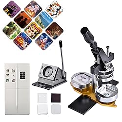 - Craft special magnets designed to your preferences using this button badge making machine. Designed with a paper cutter, it ensures precise cutting while supporting efficient magnet creation for refrigerators or any iron-based location. By utilizing compatible consumables, this tool provides a practical way to produce distinctive badges for personal or business needs. Specifications: Product name: Magnet Maker Machine Mold size: 2 x 2 inches / 5 x 5 cm Product material and process: electroplating /injecting molding/ stamping Product function: making photo refrigerator magnets Product use scenario: suitable for beginners and home production enthusiasts, and also suitable for small craft merchants, who can easily complete the production of photo refrigerator magnets Packing list 1: Fridge magnet maker machine *1 (body *1, handle *1) Paper cutter *1 (body *1, handle *1) Consumables *100 (including metal cover *100, PP back plate *100, film *100, magnet *100) or Packing list 2: Consumables *200 (including metal cover *200, PP back plate *200, film *200, magnet *200) Notes: 1. Due to different lighting and screen settings, the item color may be slightly different from the picture. 2. Due to different manual measurements, please allow a 1-2cm difference in size.