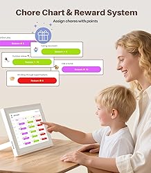 WiFi-connected smart digital calendar designed to streamline family life—combines a touchscreen calendar, interactive chore chart, and meal planner in one. Assign color-coded tasks to each family member, track schedules, and eliminate chaos, making it perfect for busy households, kitchens, or home offices