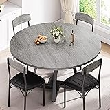 - Round Kitchen Dining Room Table Circle Dining Dinner Table with Pedestal Metal Frame, Space Saving Wood Industrial Furniture for Small Space (Grey, 47IN)
