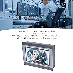 Fast PLC Control: 32-bit 240MHz ARM9 processor and 128M memory enable stable, high-speed operation. Simple Setup: Includes mounting screws and fits 190x135mm panel openings for quick installation. HMI Programming: Supports HMI Studio 5.1 software for easy customization via USB connection. Relay Outputs: 12 input/8 output relay points (DC24V 5A) for versatile industrial automation control. 7-Inch Touch Screen: High-resolution 800x480 TFT LCD with 260K colors ensures clear visibility in industrial settings.