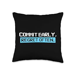 Perfect for software engineers, coders, and programming nerds who love sarcastic humor. Great for developers, computer geeks, and anyone with a passion for coding. Fun and witty design for work or casual wear. Commit early, regret often. Ideal for birthdays, holidays, or any special occasion for programmers, software engineers, and tech lovers. Great for friends, coworkers, or family who enjoy coding and clever computer sayings 100% spun-polyester fabric Double-sided print Filled with 100% polyester and sewn closed Individually cut and sewn by hand Spot clean/dry clean only