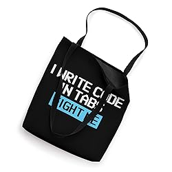Perfect for software engineers, coders, and programming nerds who love sarcastic humor. Great for developers, computer geeks, and anyone with a passion for coding. Fun and witty design for work or casual wear. I write code in tabs. Fight me. Ideal for birthdays, holidays, or any special occasion for programmers, software engineers, and tech lovers. Great for friends, coworkers, or family who enjoy coding and clever computer sayings 16” x 16” bag with two 14” long and 1” wide black cotton webbing strap handles. Made of a lightweight, spun polyester canvas-like fabric. All seams and stress points are double-stitched for durability, and the reinforced bottom flattens to fit more items and hold larger objects. Spot clean/dry clean only.