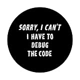 Sorry, I Can't. I Have to Debug the Code. Sarcastic coding quote to give to men and women programmers. Adhesive backing attaches the PopGrip to your case or device. Will not stick to silicone, leather, waterproof, or highly textured cases. Works best with smooth, hard, plastic cases. Not compatible with wireless charging Printed top is swappable with other compatible PopGrip models. Just press flat, turn 90 degrees until you hear a click and remove to swap.