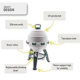 Consistent Hydration for Poultry: Ensure your flock always has access to water with this automatic chicken waterer designed for chickens, ducks, turkeys, and other poultry. Its gravity-fed system provides a smooth and consistent flow, helping reduce spills and mess while maintaining easy access for birds. Perfect for both beginner and experienced poultry keepers who value simplicity and long-lasting performance. Large 6-Gallon Capacity & Size: Built with a generous 6-gallon (22.7-liter) tank, this chicken water feeder provides enough water for up to 25 birds. Measuring 27” H × 16” W, it’s ideal for coops, runs, or outdoor setups. The large capacity minimizes refill frequency, saving time and ensuring that your flock remains hydrated throughout the day in any season or weather condition. Durable & Weather-Resistant Construction: Made from UV-stabilized, BPA-free plastic, this poultry drinker stands up to outdoor elements. Its solid brass valve delivers dependable performance, while silicone seals provide a secure, leak-free connection. Designed for daily farm use, this waterer offers long-term reliability for both backyard flocks and small-scale operations, making it a valuable addition to your poultry setup. Easy to Refill and Clean: The two-piece tank and top-fill opening make this chicken water dispenser incredibly easy to use. Quickly remove the top to rinse and refill—no tools or complex setup required. The smooth interior helps keep maintenance simple, while its nestable design saves space when stored or transported. Perfect for poultry owners seeking a low-maintenance and time-saving hydration system. Stable, Adjustable & Practical Design: Built with three reinforced support legs, this chicken waterer automatic system remains steady on uneven ground. The elevated drinking bowl helps reduce debris entry, and the adjustable hose connection allows you to modify water levels for chicks or adult birds. Its sturdy structure ensures stability and reliable operation, promoting cleaner, safer, and more consistent hydration for your flock.