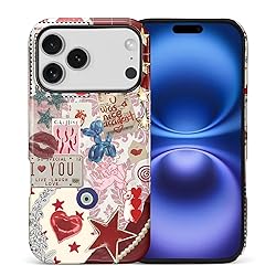 DAIZAG Case for iPhone 17 Pro,Mixed 2 Layer Design Shockproof Soft TPU Ddouble Protection Phone Case for iPhone 17 Pro-Conch Red Pearl Collage