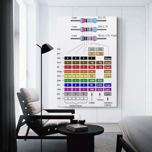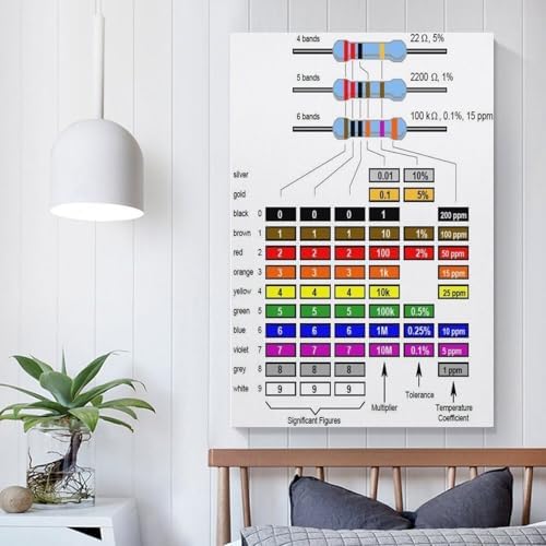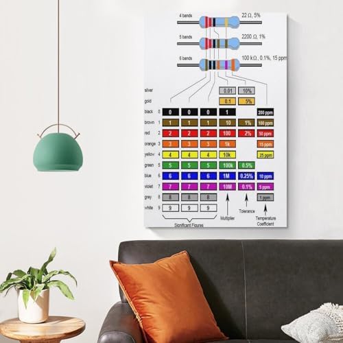 Resistor Color Code Chart Poster Resistor Guide (3) Canvas for Living Room Bedroom Decor 08x12inch(20x30cm) Unframe-style