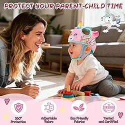 - Tendccy Baby Head Protector Helmet for Crawling Walking - No Bumps Soft Toddler Safety Head Protection for Baby 6-12 Months 1-2 Years - Adjustable Lightweight Breathable Infant Helmet (Unicorn)