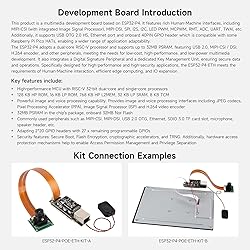 High-performance MCU: Equipped with a RISC-V 32-bit dual-core and single-core processors, offering exceptional processing power for various applications. Memory and Storage: Features 128 KB HP ROM, 16 KB LP ROM, 768 KB HP L2MEM, 32 KB LP SRAM, and 8 KB TCM, providing efficient data handling and storage. Image and Voice Processing: Supports advanced image and voice processing with interfaces such as JPEG codecs, Pixel Processing Accelerator (PPA), Image Signal Processor (ISP), and H.264 video encoder for enhanced multimedia performance. Integrated Peripherals: Includes commonly used interfaces like MIPI-CSI, MIPI-DSI, USB 2.0 OTG, Ethernet, SDIO 3.0 TF card slot, microphone, and speaker header, offering versatile connectivity options. Security Features: Built with robust security mechanisms, including Secure Boot, Flash Encryption, cryptographic accelerators, and TRNG, as well as hardware access protection for Access Permission Management and Privilege Separation. Rich WiKi Resources: We provide official Wiki resources, please visit our store and click the wiki page to get resources.