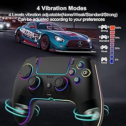 - Experience next-level gaming with this advanced wireless controller for PS-5, PC, and Mac. Featuring innovative Hall joystick triggers for precise control and responsive gameplay, this controller comes packed with premium features including programmable functions, vibrant RGB lighting, and motion sensors. The built-in TURBO function and 16 buttons provide enhanced gameplay options, while the 3.5mm audio jack and built-in speakers deliver immersive gaming audio. With Bluetooth connectivity and a rechargeable 1500mAh battery, you can enjoy extended wireless gaming sessions. The controller's ergonomic design, measuring 6 inches in width and 4 inches in height, ensures comfortable handling during long gaming sessions. The package includes a 6-inch cable for charging and wired play options. Compatible with PS-5 console and various platforms, this controller combines style, functionality, and performance for an enhanced gaming experience.