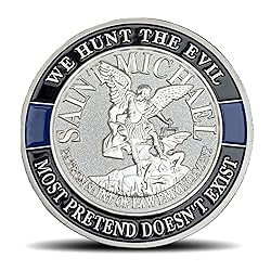 - Unique Design: One side of the coin features the Thin Blue Line flag with the text "Blessed Are The Peacemakers," symbolizing the role of law enforcement officers as peacekeepers. The other side showcases Saint Michael, the patron saint of law enforcement, with the text "We Hunt The Evil" and "Most Pretend Doesn't Exist," emphasizing the officers' commitment to fighting against crime and evil.