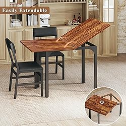 - HUAHUU Dining Table Set for 4, Extendable Kitchen Table Cushion Chairs Set of 4, Rectangle Dining Table with Metal Frame & MDF Board, Folding for Small Apartment Saving Space, Rustic Brown