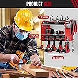 All-in-One Charging & Storage Station: Features a built-in 8-outlet power strip with a 6.5FT heavy-duty cord, allowing you to charge multiple tool batteries, phones, and accessories simultaneously while keeping your drills and tools neatly organized on the wall. Heavy-Duty & Durable Construction: Built with robust metal framework and reinforced shelves, our organizer supports up to 100lbs of weight, securely holding your heaviest power tools, drills, and equipment without sagging or bending. Optimized for Maximum Organization: The 4-tier design includes specialized holders for 4 drills, ample shelf space for tools like circular saws and grinders, and multiple hooks for hanging screwdrivers, pliers, and cords, eliminating workshop clutter. Easy & Versatile Wall Mount: Securely mounts to studs in your garage, workshop, shed, or basement in minutes. The modular design helps you reclaim valuable workbench space, creating a safer and more efficient working environment. The Perfect Gift for DIY Enthusiasts: An ideal and practical birthday, Father's Day, or Christmas gift for men, husbands, and dads who take pride in their tools and appreciate a clean, well-organized workspace.