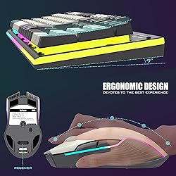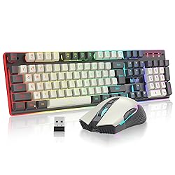 - RedThunder K10 Pro Wireless Gaming Keyboard and Mouse Combo, RGB Backlit Rechargeable 3800mAh Battery, Mechanical Feel Anti-ghosting Keyboard + 7D 3200DPI Mice for PC Gamer(White Gray)