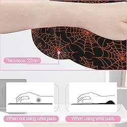 3-piece Mouse Pad Set with Wrist Support: includes mouse pad (10 inches × 9 inches), keyboard wrist rest (17.4 inches × 3.2 inches), and round cup pad (3.9 inches). Designed for wrist comfort during long periods of computer use, suitable for all mice/keyboards, providing support for the wrists when typing and using the mouse. Ergonomic Design: This Halloween Spider Web mouse pad set features an ergonomic design that conforms to the wrist, providing a comfortable feel and effective support to help prevent repetitive strain injuries. Its angled design keeps the wrist in a neutral position, avoiding excessive bending. This allows the wrist to maintain a natural and comfortable posture. Memory Foam Design: The edges are reinforced to withstand prolonged use. The soft memory foam padding slowly rebounds after the hand is removed, resisting deformation, making it suitable for extended use. It effectively assists typing and alleviates discomfort. Anti-slip Base: The anti-slip rubber base securely adheres to the desk surface, effectively preventing the mouse pad from moving, ensuring it does not interfere with your work or gaming, and keeping the wrist rest stable during use. Material:The mouse pad features a smooth, breathable fabric and memory foam-filled keyboard pad, offering both comfort and durability.